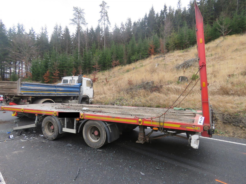 Náklaďák jel příliš rychle a jeho přívěs srazil protijedoucí osobák