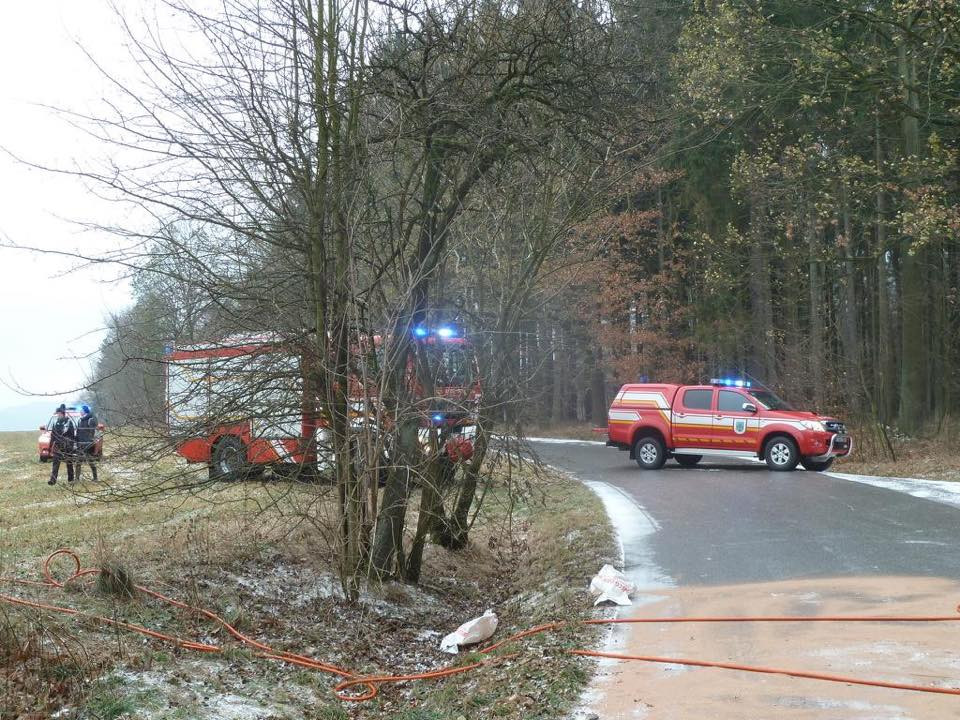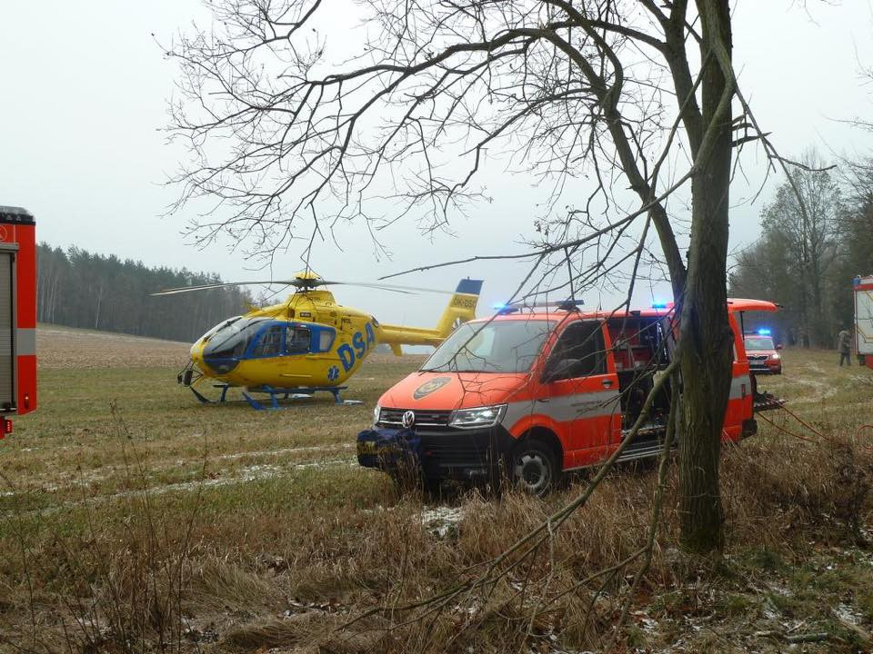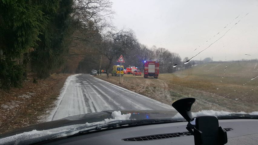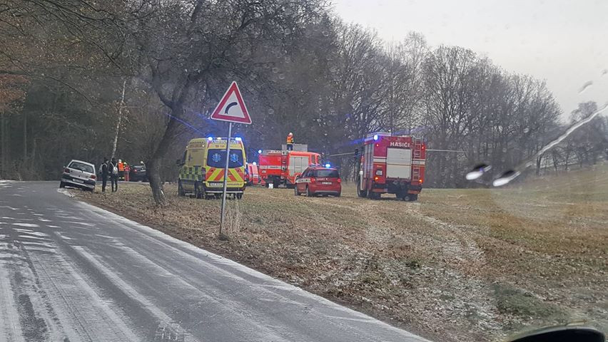 VIDEO, FOTO: U Bílého Kostela skončil osobák v příkopu, řidiče transportoval vrtulník