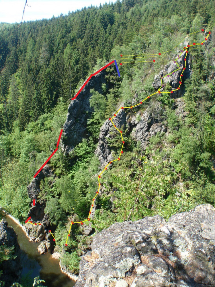 Nová trasa na Vondí bráně je vyznačena žlutou barvou