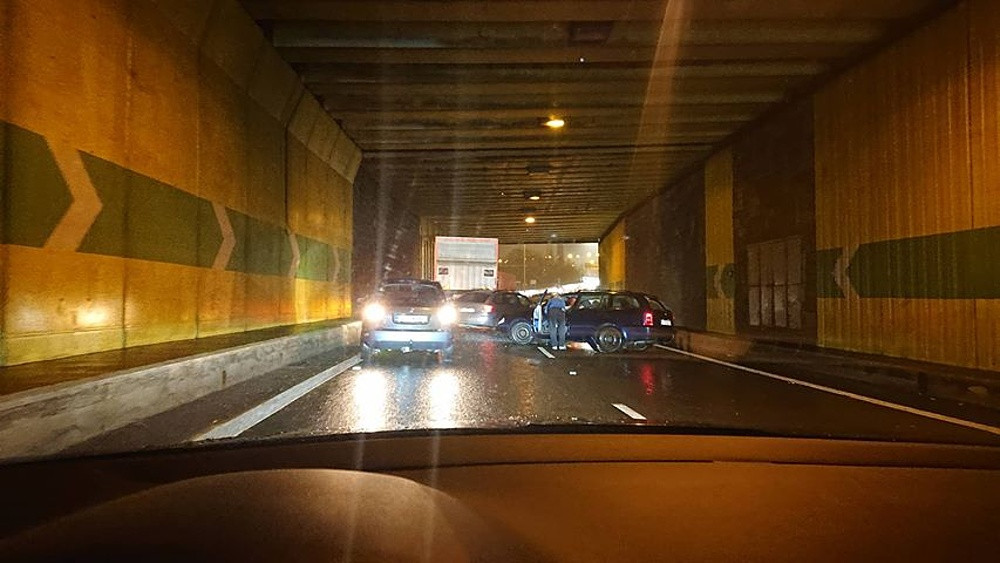 V libereckém tunelu se střetl nákladní automobil s osobákem