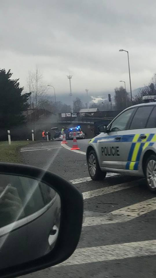 U sjezdu na Jablonec havarovalo vozidlo do dopravního značení