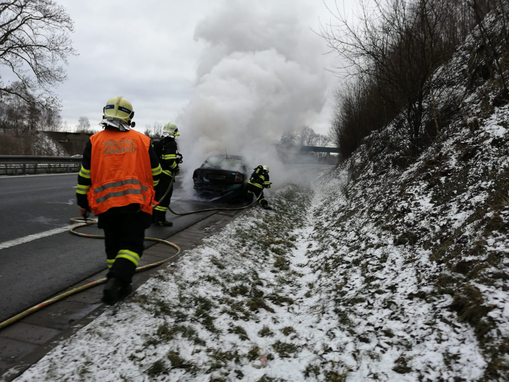 Před Libercem hořel Passat, příčinou byla závada v elektroinstalaci