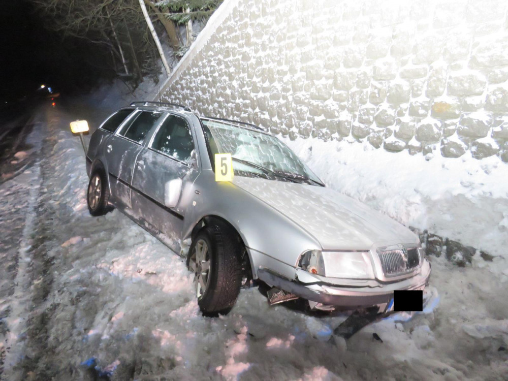 FOTO: Řidič naboural do zdi nedaleko Rádelského mlýna