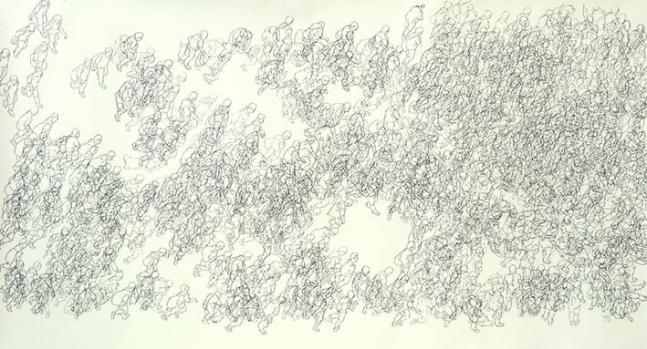Výstava Jana Měřičky Neklid davu proniká do myšlení lidí a zároveň je obrazem dnešní doby