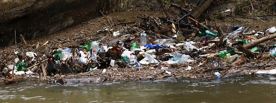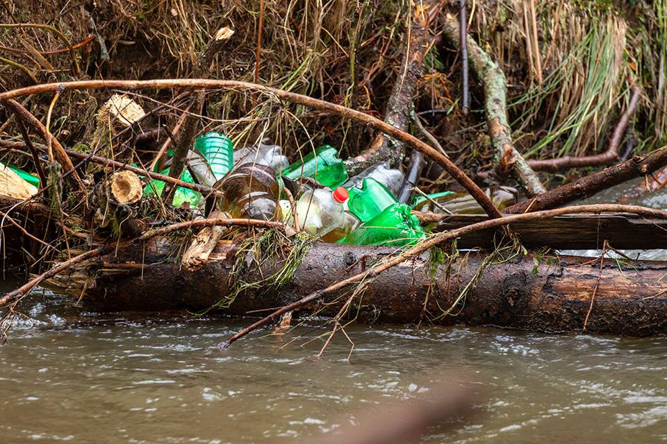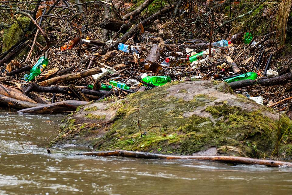 Řeka Kamenice zaplněná plasty