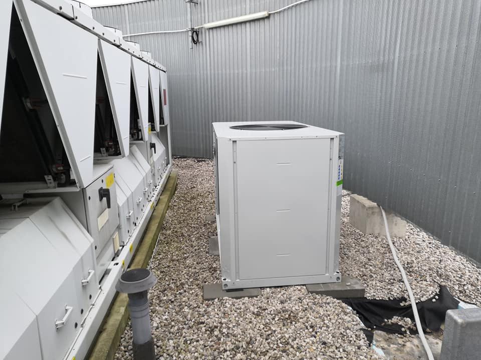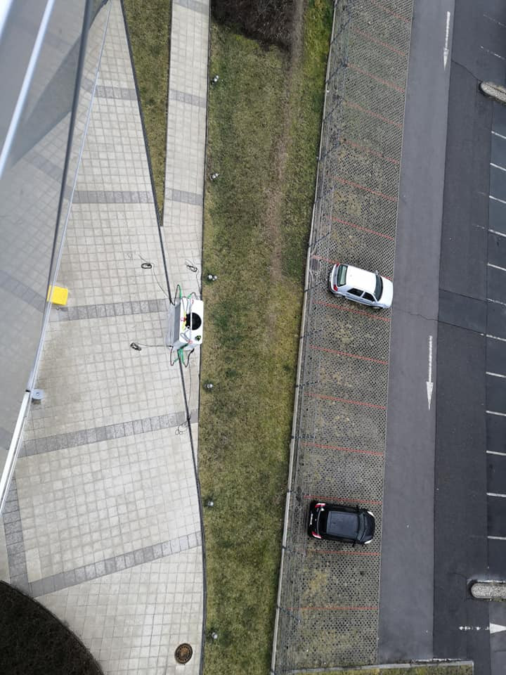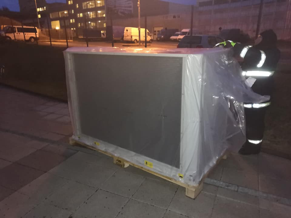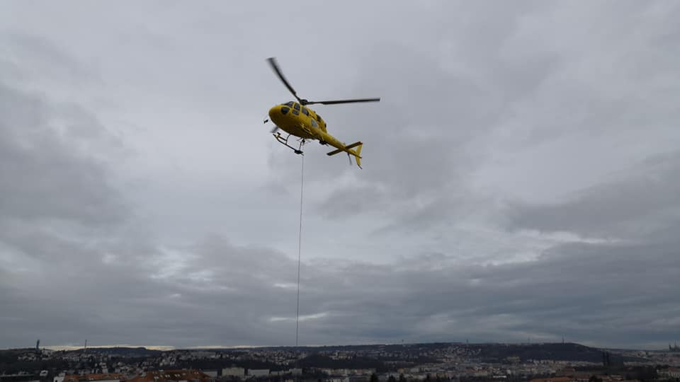 Hasiči z Růžodolu se specializují i na vazačské práce. Na snímku instalují klimatizační jednotky na budovu v Praze.