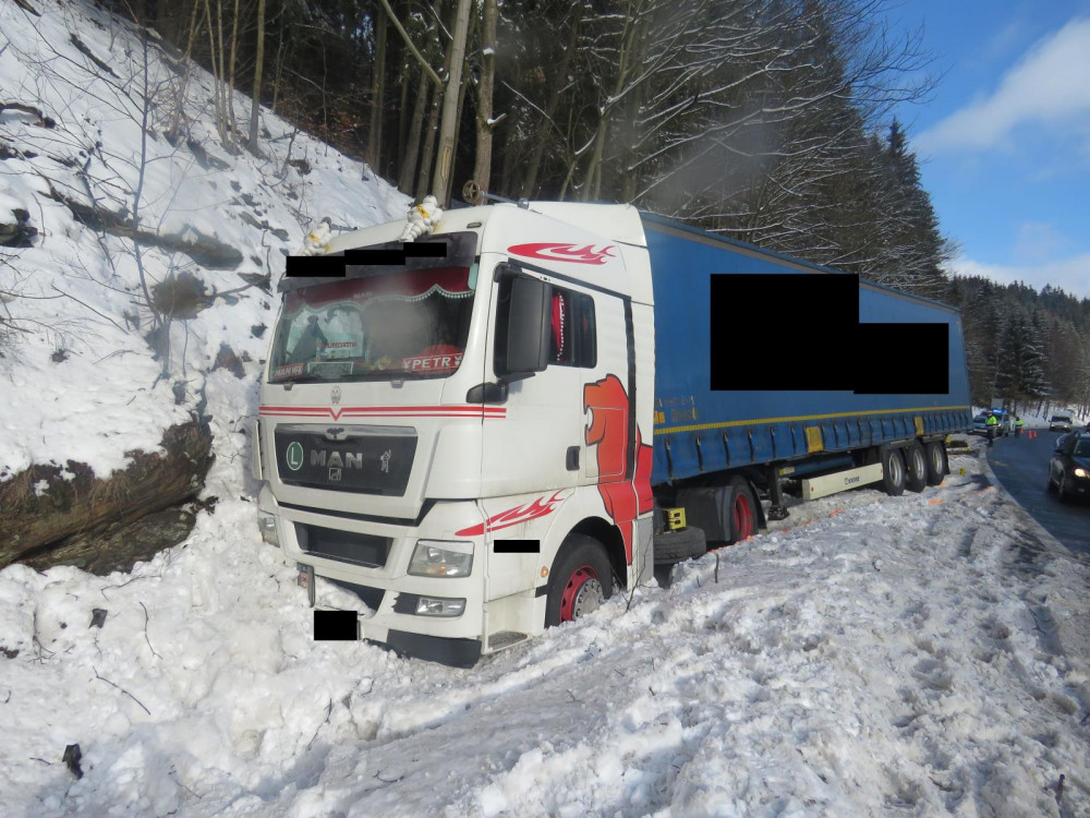 Řidič náklaďáku nezvládl řízení a skončil v příkopu
