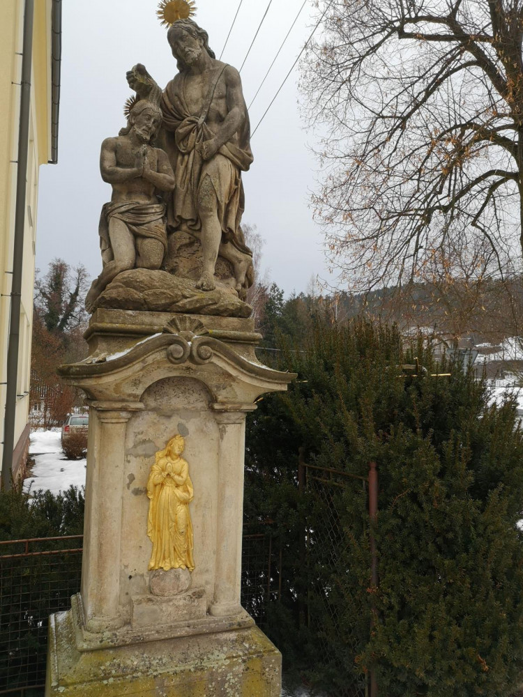 Vyrvaný kříž a ulomené prsty. Vandal poničil sousoší Křest Krista