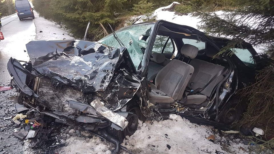 FOTO: Vážná nehoda u Ralska. Při čelní srážce se těžce zranili dva lidé