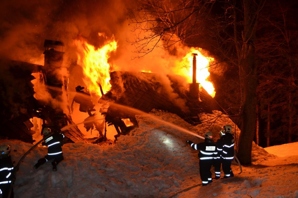 FOTO: Hasiči bojovali s požárem chalupy v Krkonoších, škody šplhají do milionů
