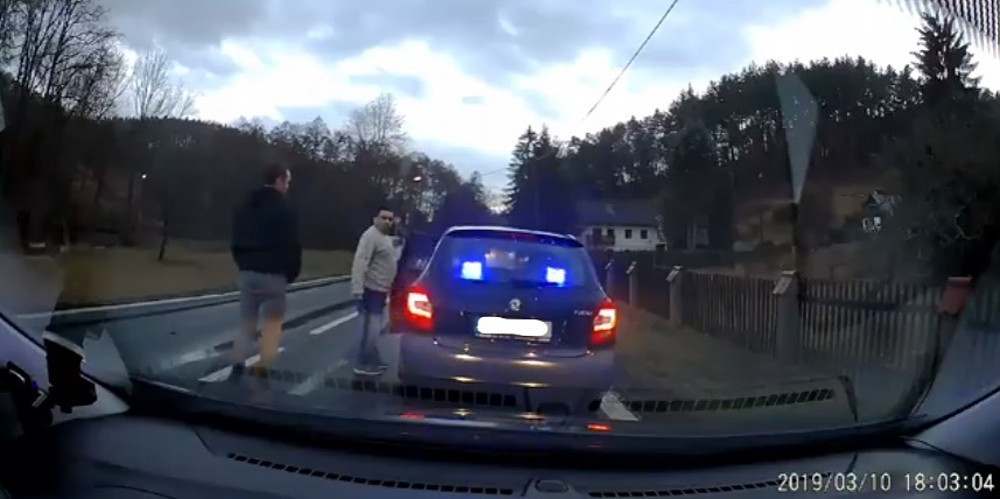 Snímek z videa, které natočil zastavený řidič palubní kamerou
