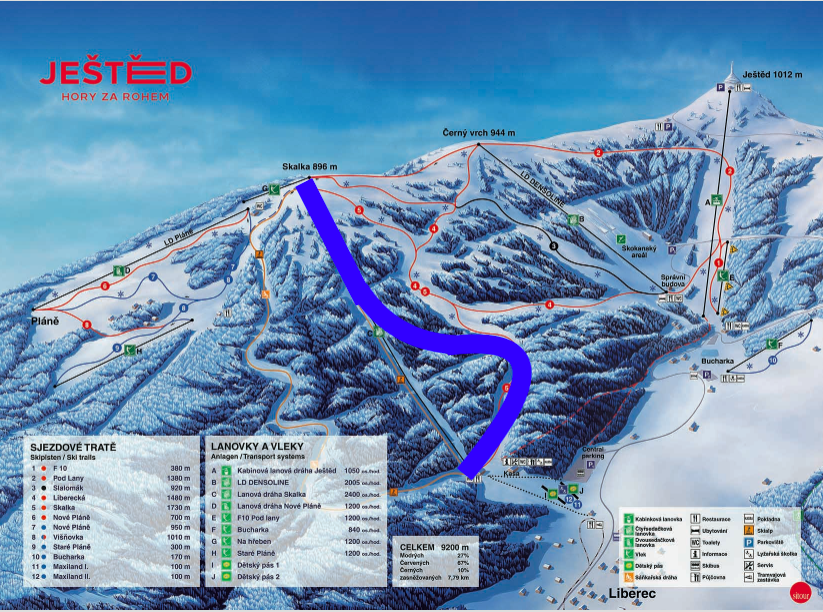 Nová sjezdovka je naznačena modrou barvou.
