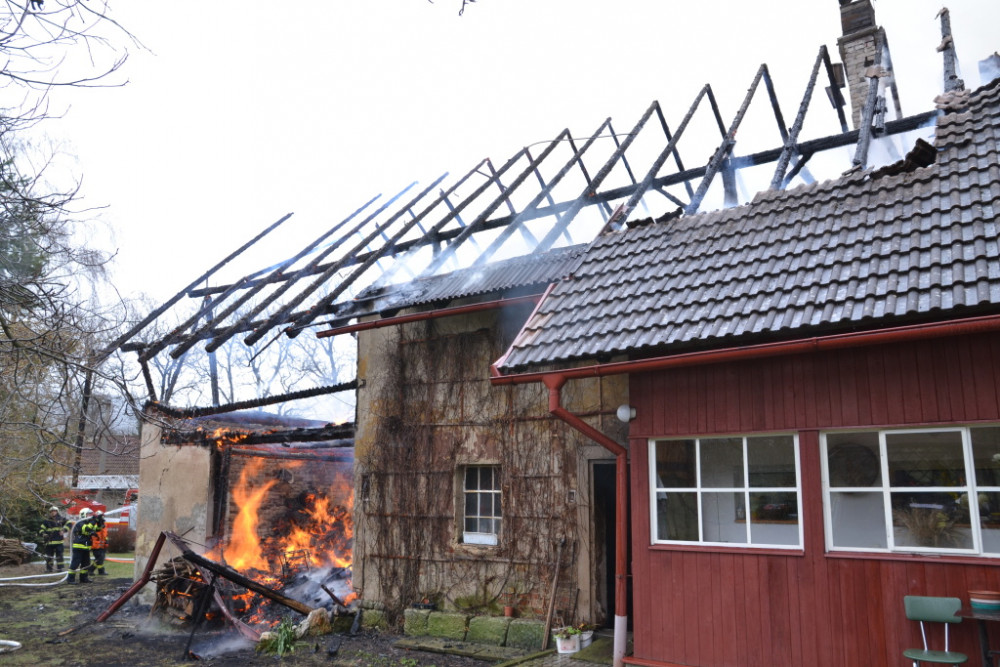 FOTO: Od hořící stodoly chytla i střecha domu, na místo vyjížděly čtyři jednotky hasičů