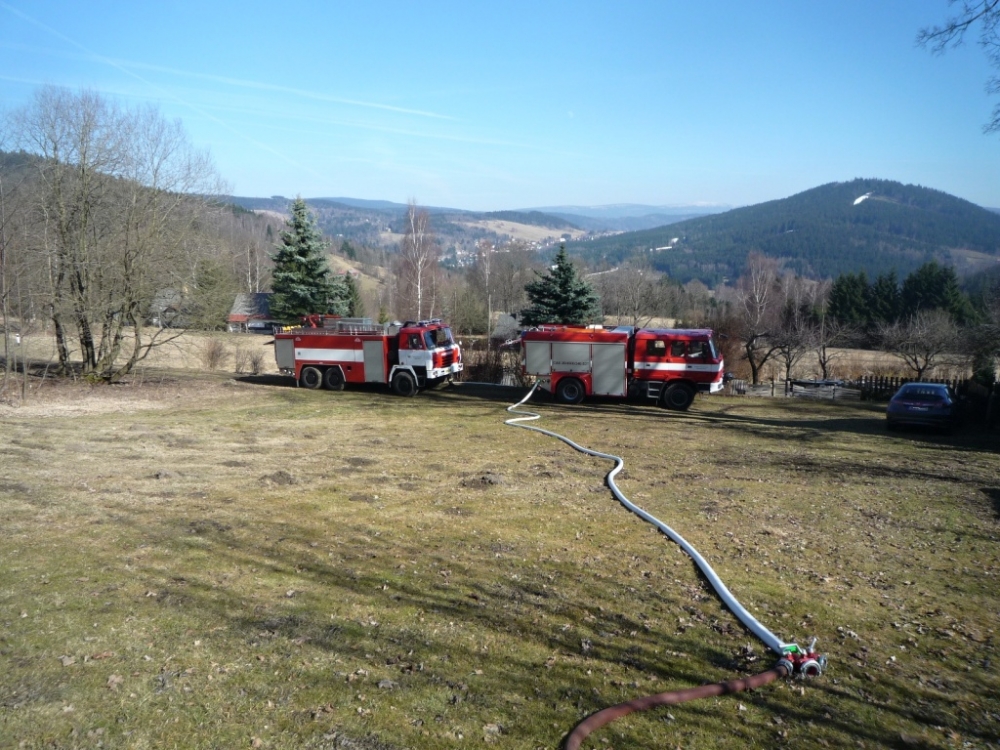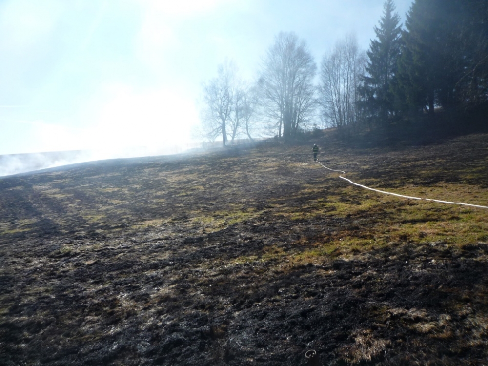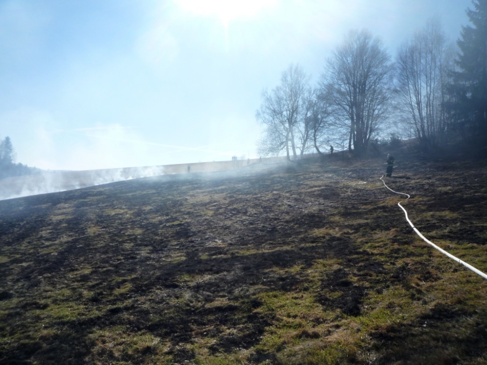 Požár trávy ve Smržovce zaměstnal tři jednotky hasičů. Foto: HZSLK