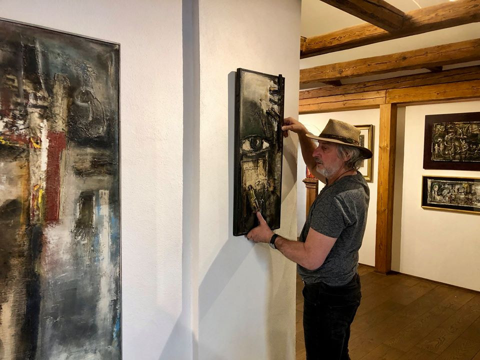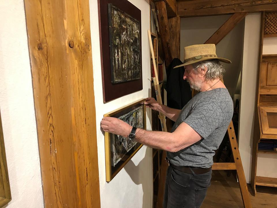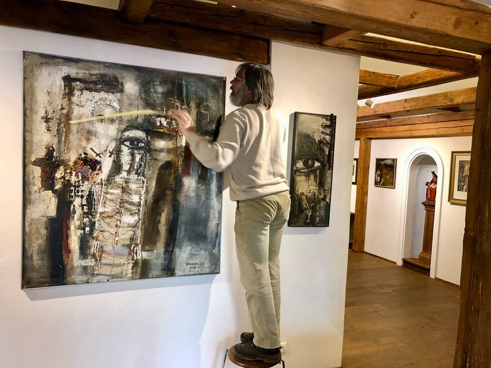 Instalace výstavy obrazů Josefa Jíry.