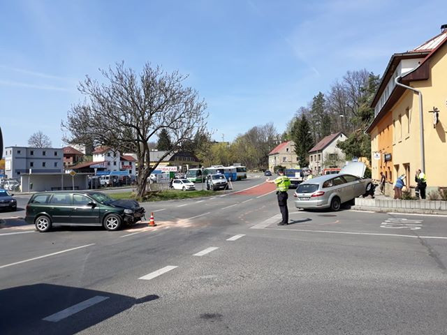 FOTO: Na křižovatce u Litesu se srazila dvě osobní auta