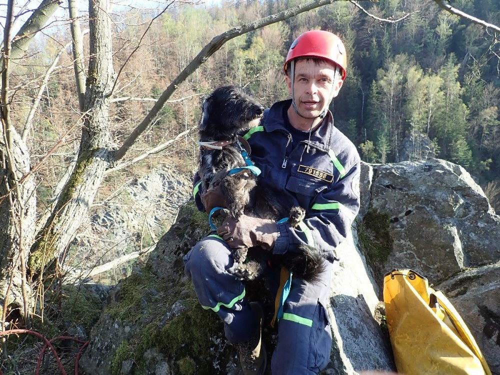 Hasiči neváhali nasadit život pro záchranu pejska, ten spadl ze zříceniny hradu