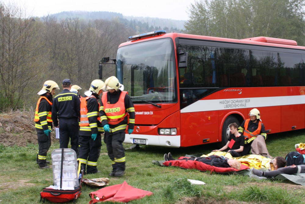 FOTO: V Peřimově sjel autobus plný lidí ze silnice. Hasiči netušili, že jde o cvičení