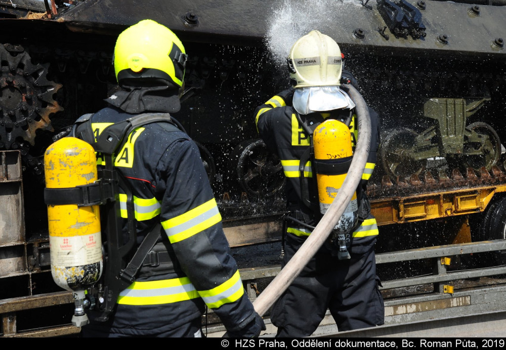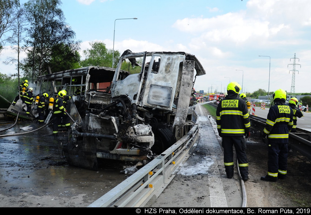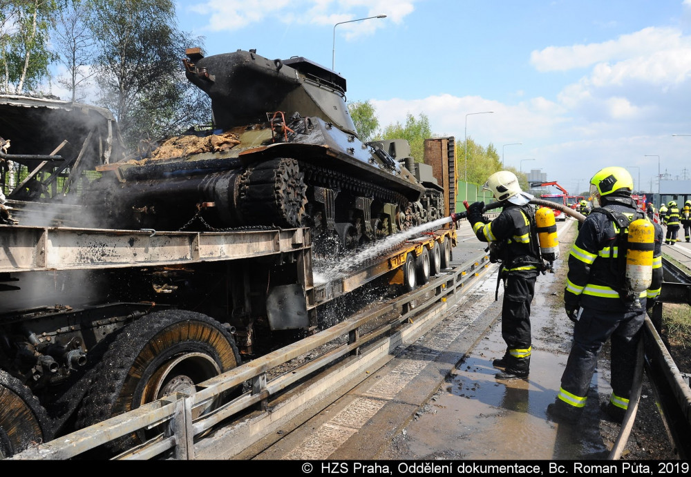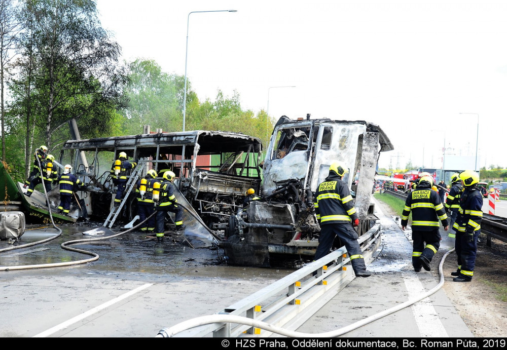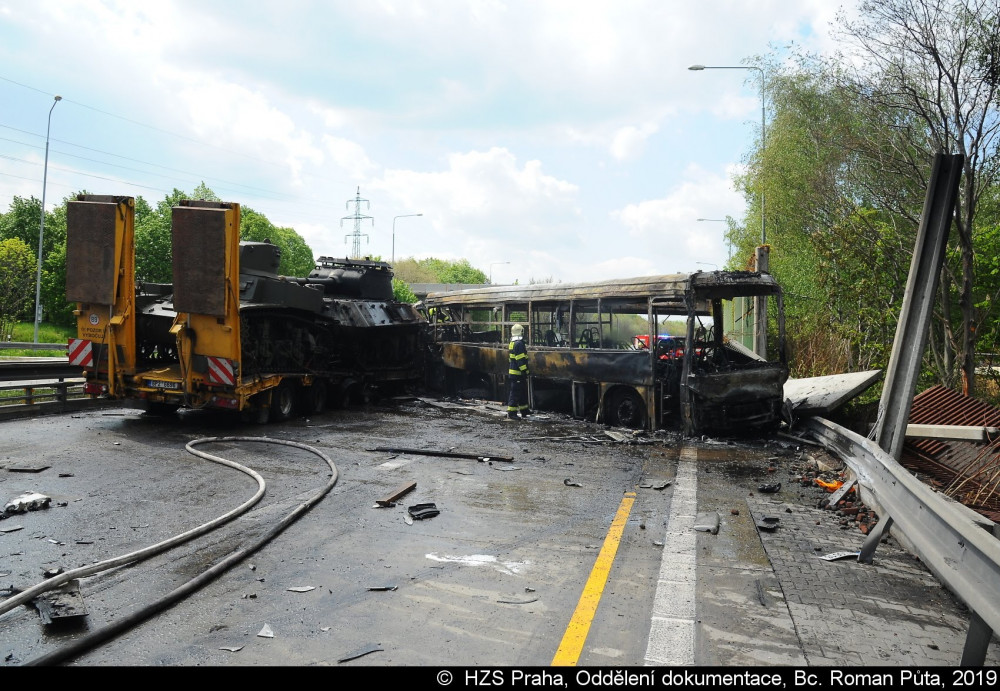 FOTO, VIDEO: Smržovské tanky se v Praze srazily s autobusem, při požáru zemřel jeden člověk