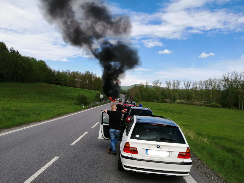 FOTO: V Rynolticích dnes odpoledne shořel osobák