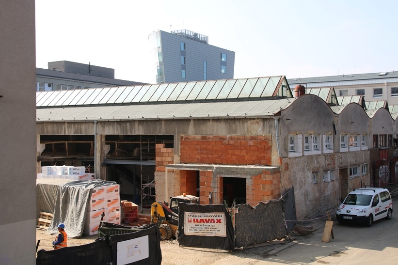 Nová školka vyrůstá v bývalých dílnách za univerzitní budovou E2. Foto: TUL