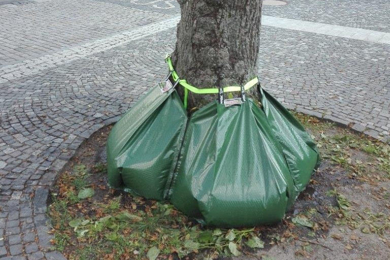 V Novém Boru testují novou metodu zavlažování stromů v ulicích, stromy mají sukýnky
