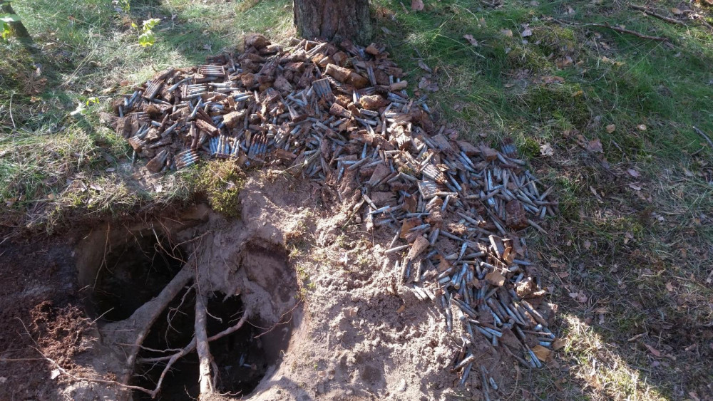 Hledač kovů v lese našel skoro sto kilogramů munice z války