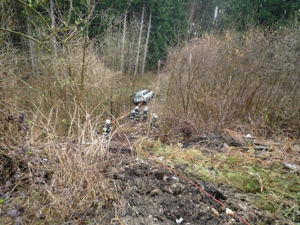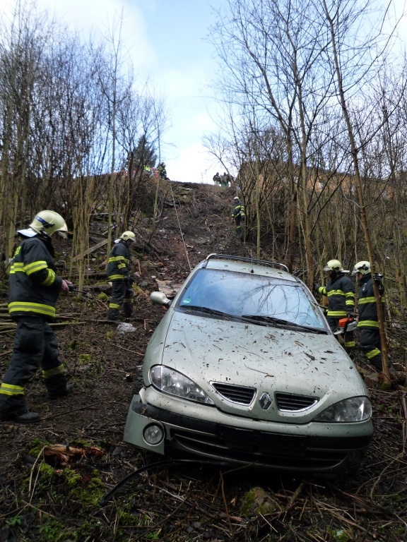 Renault se zastavil až pod třicetimetrovým srázem. Foto: HZSLK