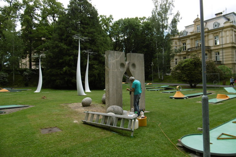 FOTO: Poničené sochy už jsou opravené. Bránu snů povalil vandal, Rodinu shodila vichřice