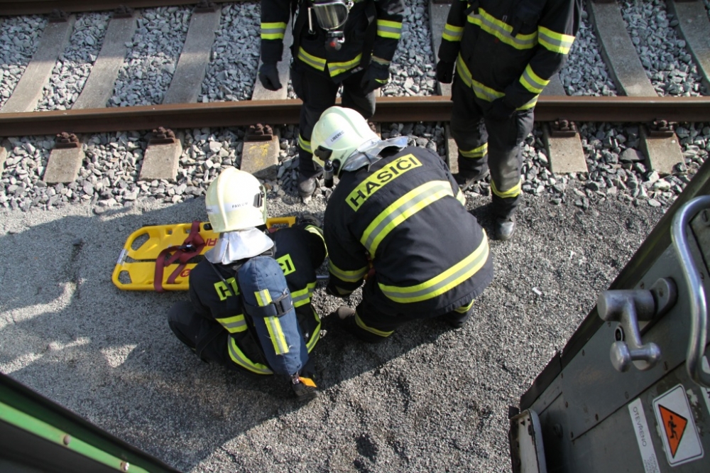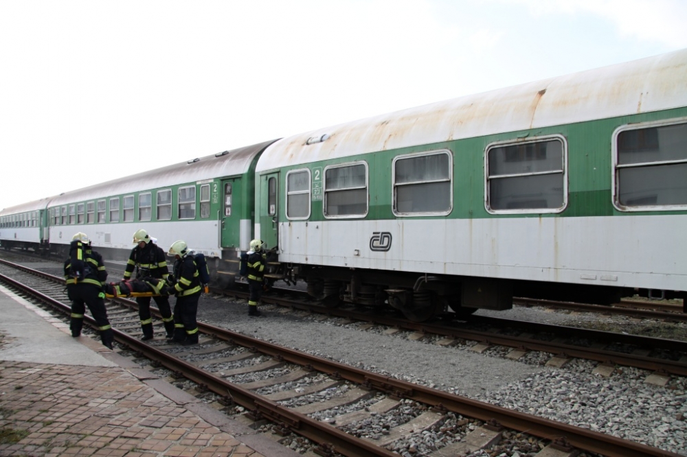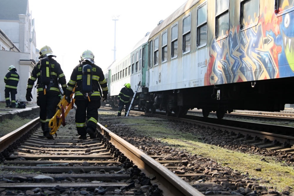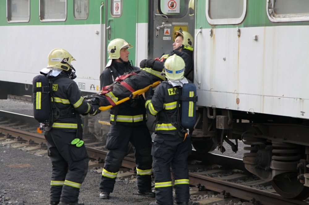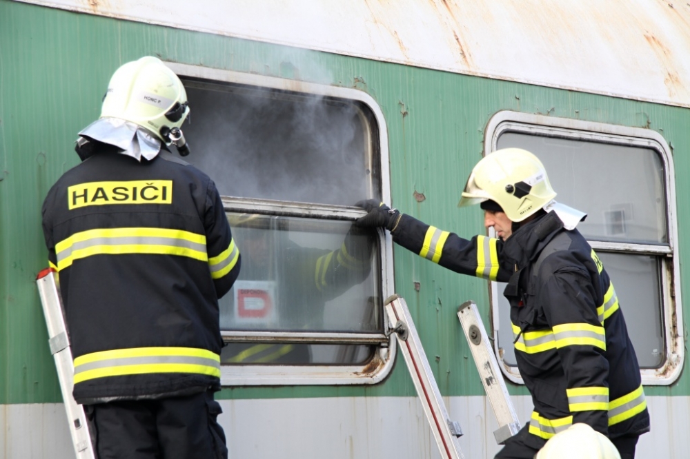 Hasiči trénovali záchranu osob z hořícího vagónu. Foto: HZSLK