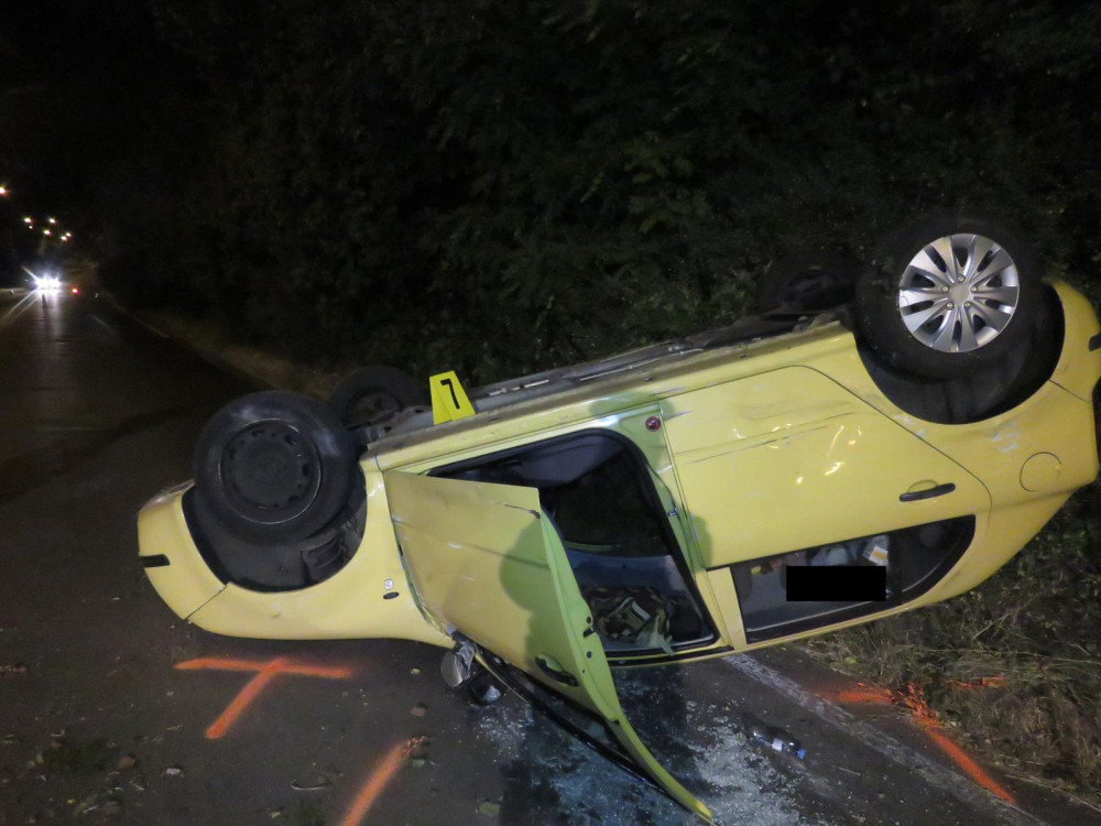 FOTO: Kvůli nebezpečnému předjíždění skončilo auto na střeše, policie hledá svědky