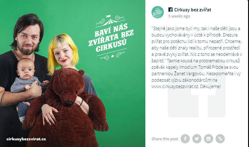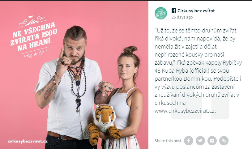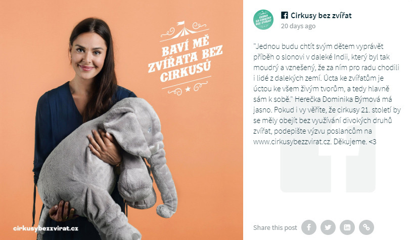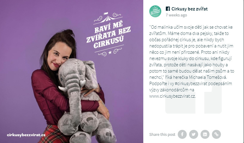 Do kampaně Cirkusy bez zvířat se zapojila i celá řada osobností.