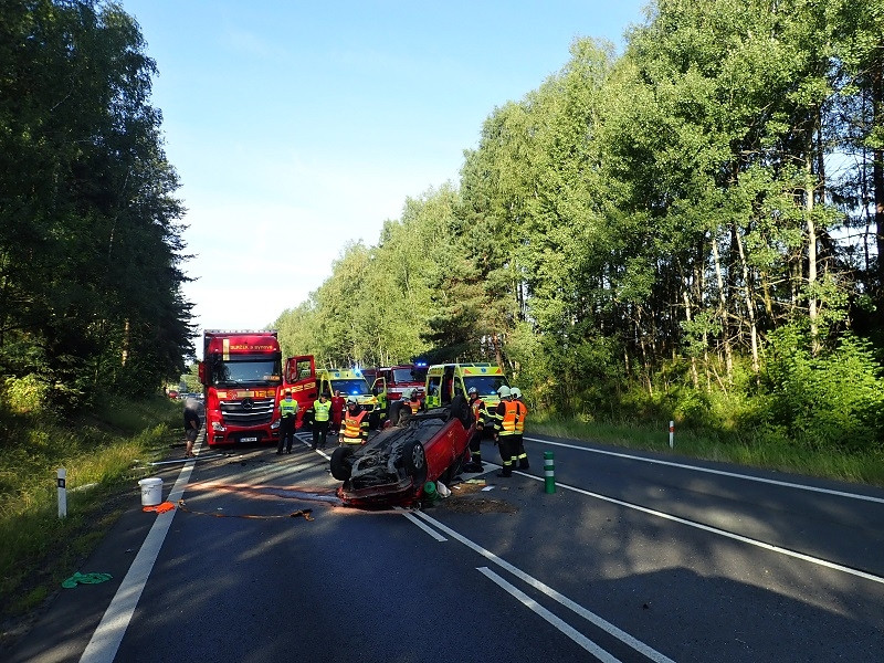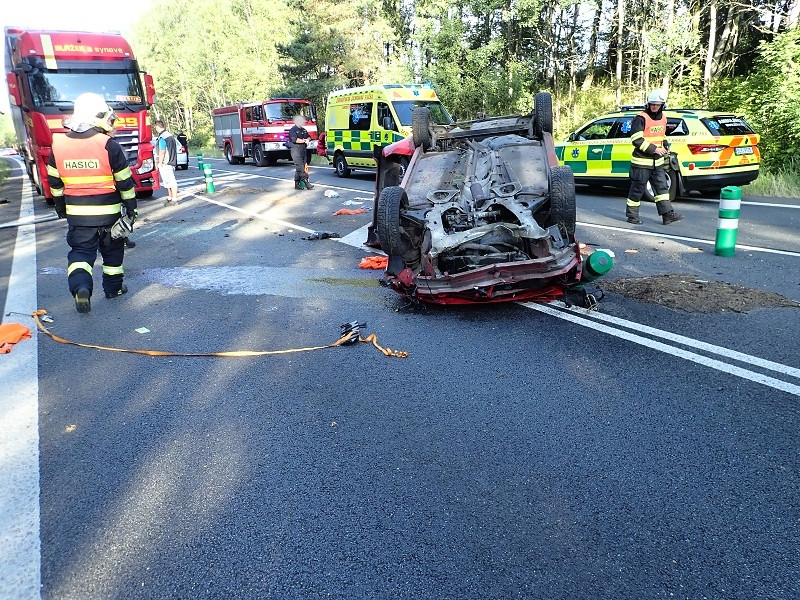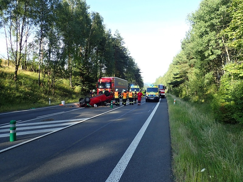 FOTO: U Jítravy se ráno střetl osobák s náklaďákem, nehoda dočasně uzavřela silnici