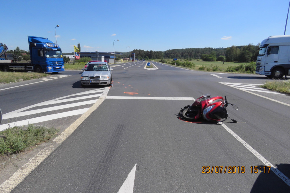 Vážná nehoda na jestřebské křižovatce. Motorkář nedal přednost autu