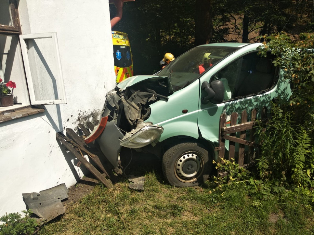 Vážná nehoda v Záskalí. Auto narazilo do rodinného domu, dva lidé se zranili