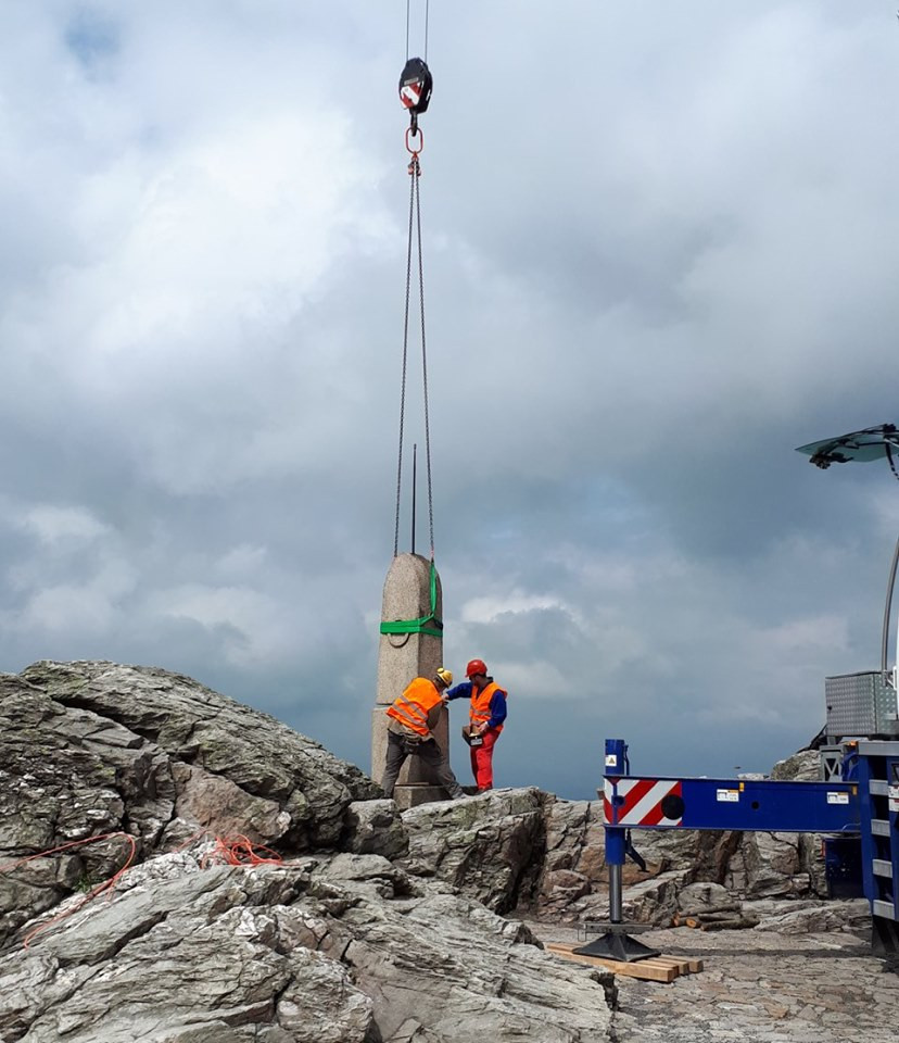 Na vrcholku Ještědu je po čtvrt roce opět vztyčený Rohanský kámen