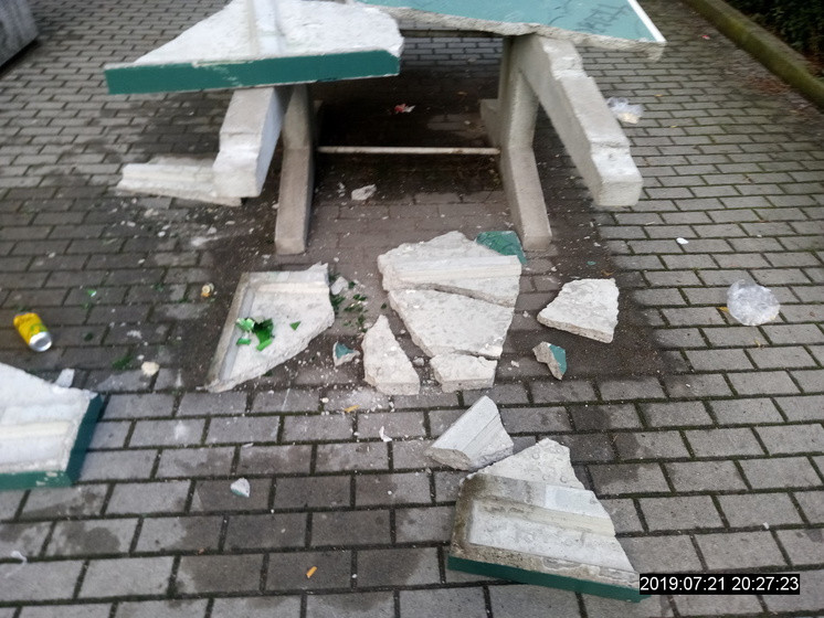 Takhle dopadl stůl po řádění výrostků.