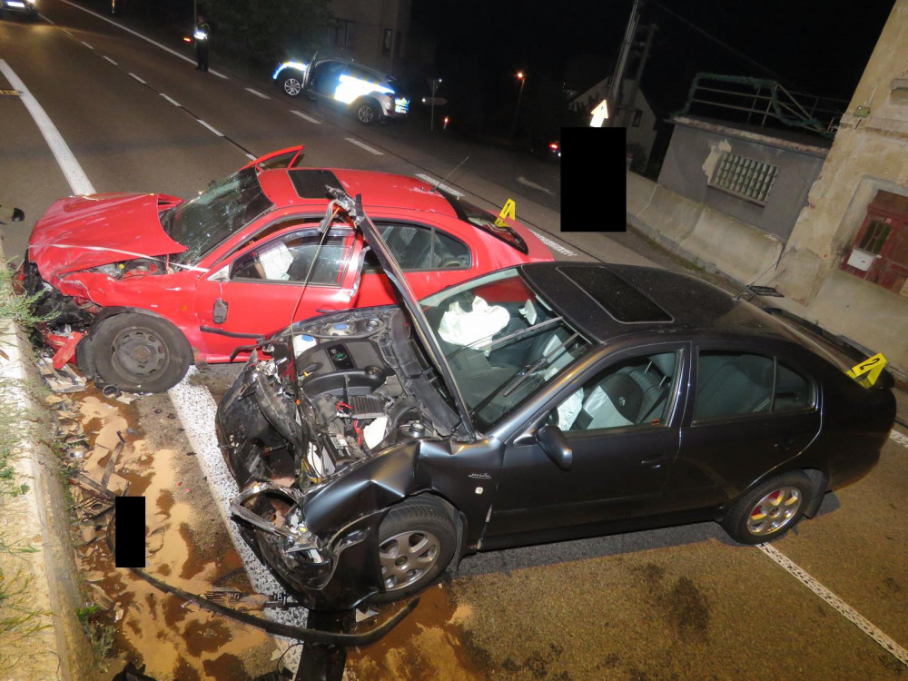 FOTO: Opilý řidič nezvládl zatáčku. V protisměru se srazil s dalším autem