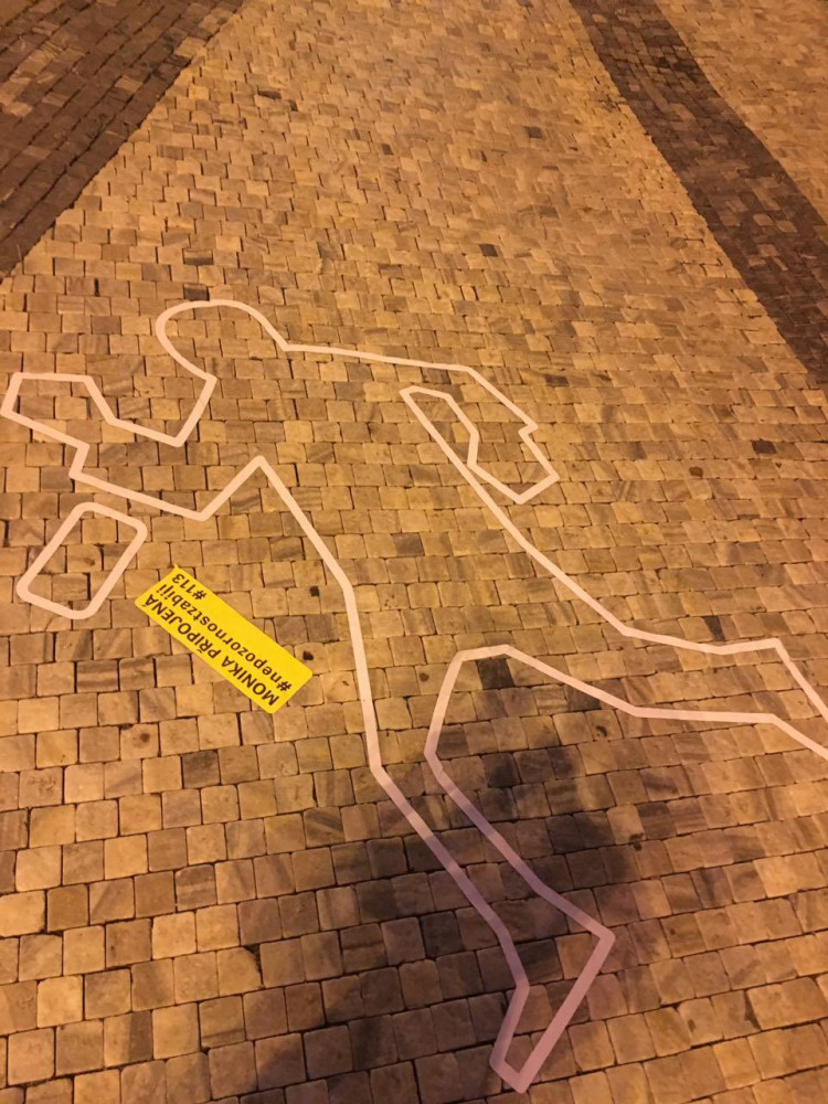 FOTO: V Liberci na Benešáku se objevily obrysy postav. Upozorňují na sražené chodce