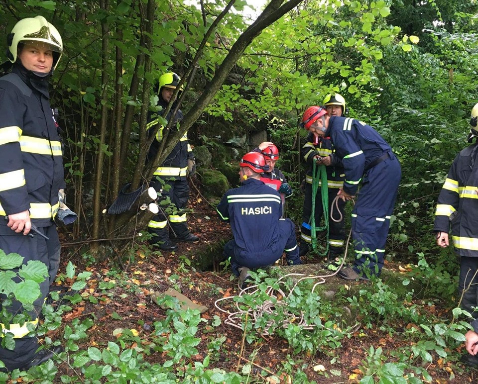 FOTO, VIDEO: Malý srnec zapadl do pět metrů hluboké staré studny. Ven ho dostali hasiči