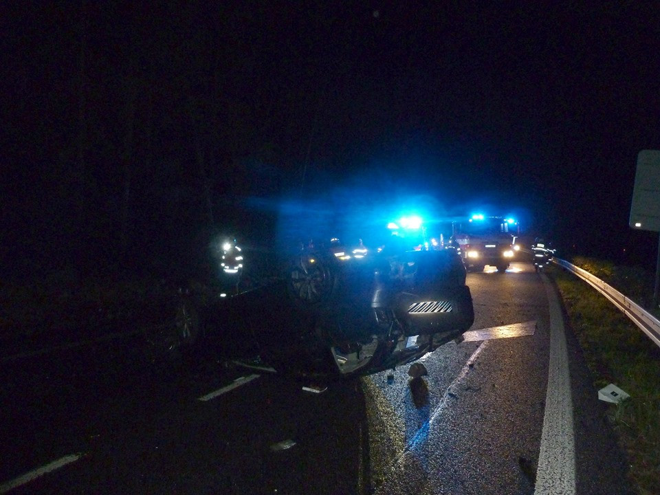 FOTO: Další nehoda u Jítravy. Auto skončilo na střeše, řidič v péči záchranářů