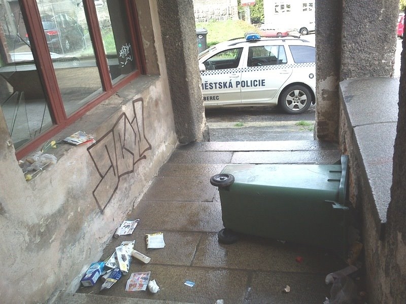 Řádění mladíka Pod Branou: rozbitá okna, převrácené popelnice