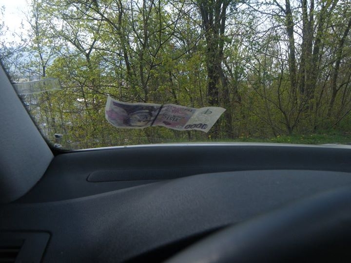 Bankovka přistála přímo na čelní sklo. Foto: MP Liberec