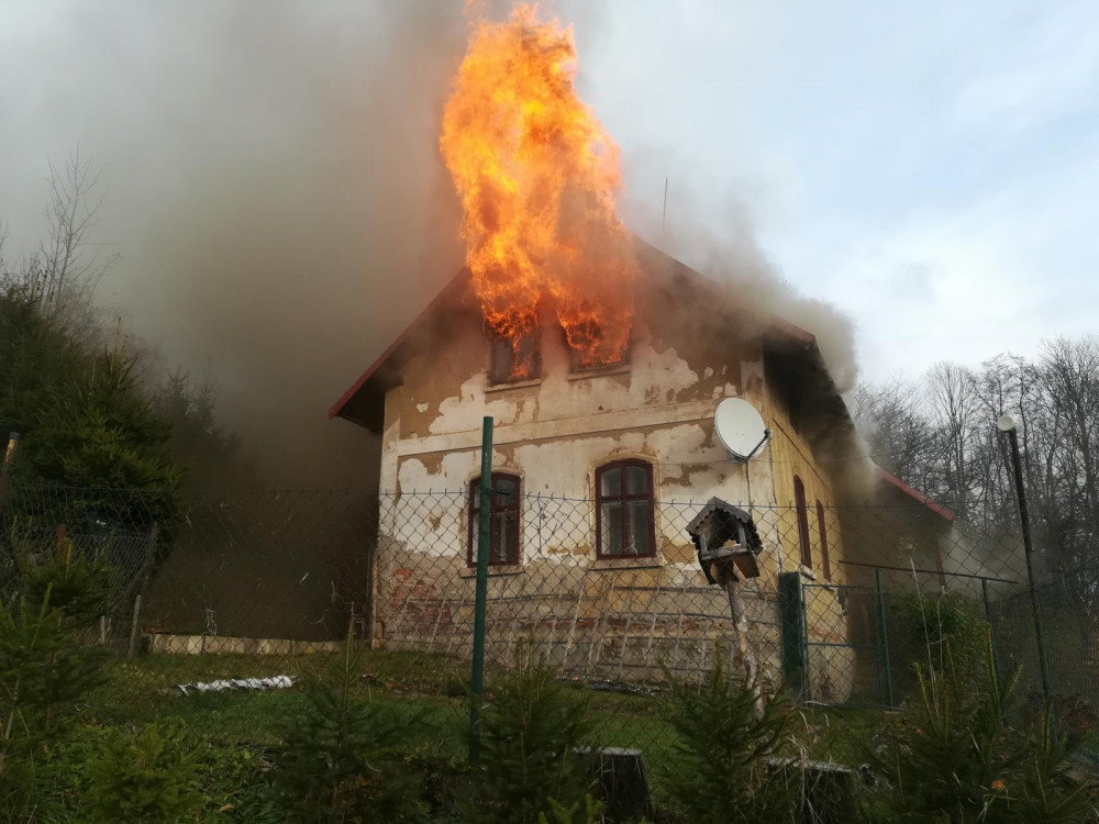 FOTO: Rozsáhlý požár rodinného domu v Držkově. Plameny šlehaly ven okny