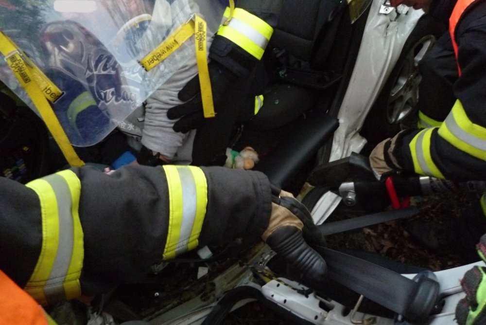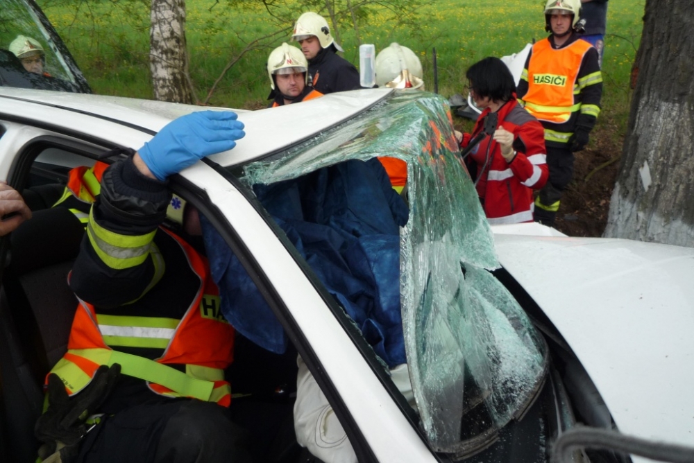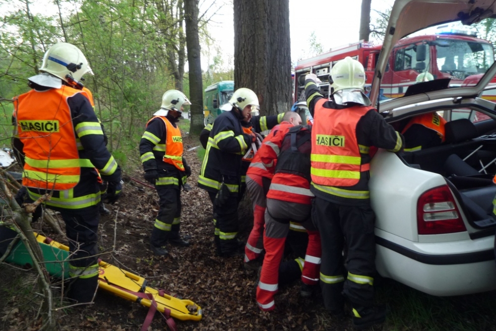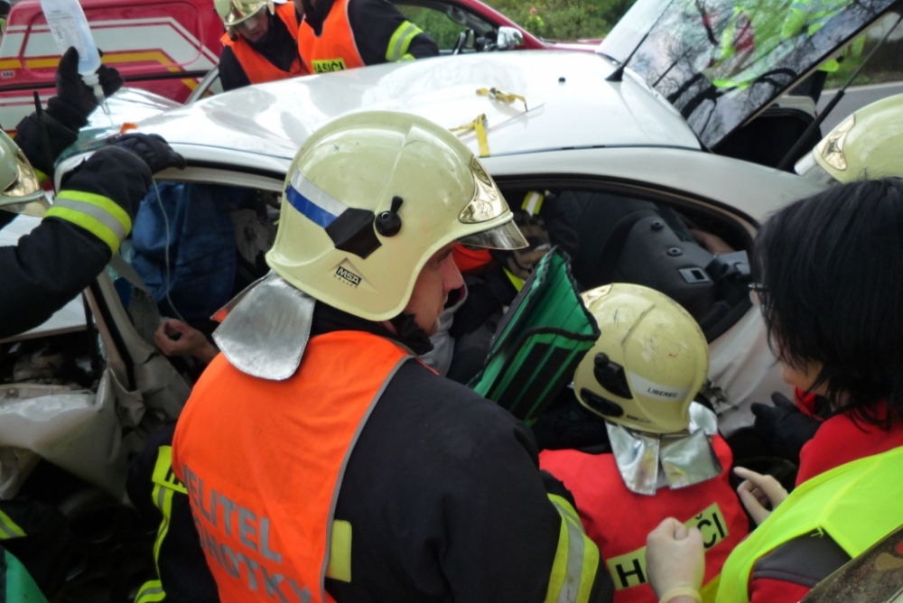 Vážná nehoda u Hrádku, řidič zůstal zaklíněn v autě. Foto: HZSLK