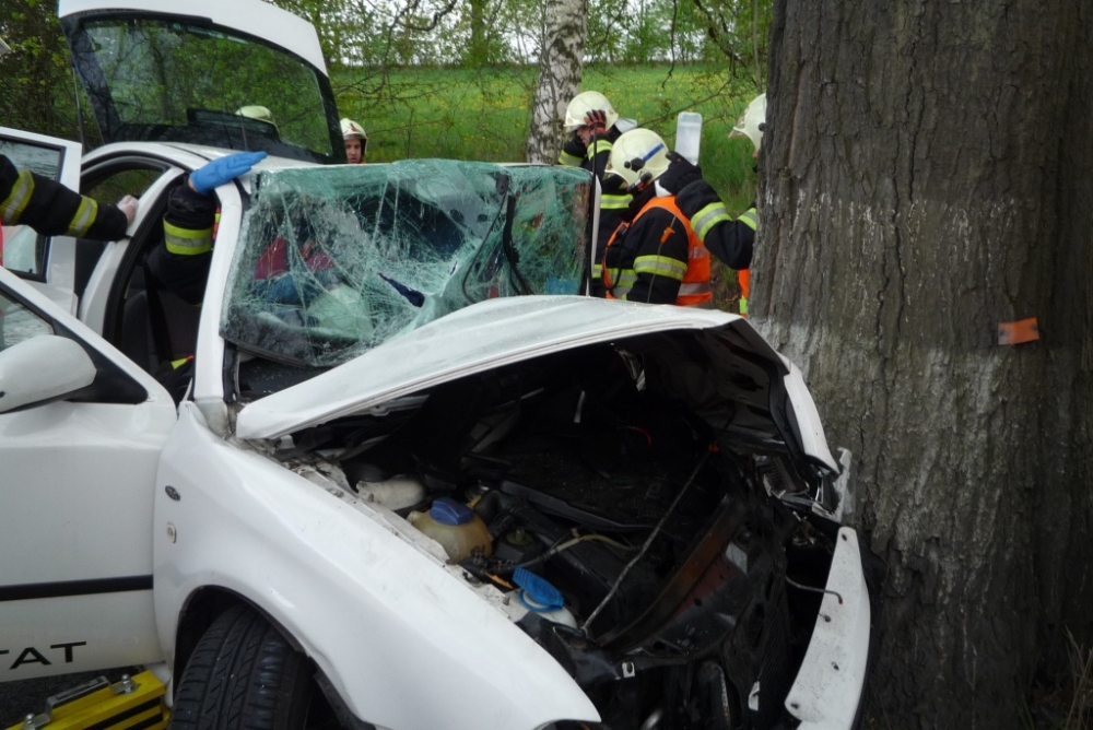 Vážná nehoda u Hrádku, řidič zůstal zaklíněn v autě