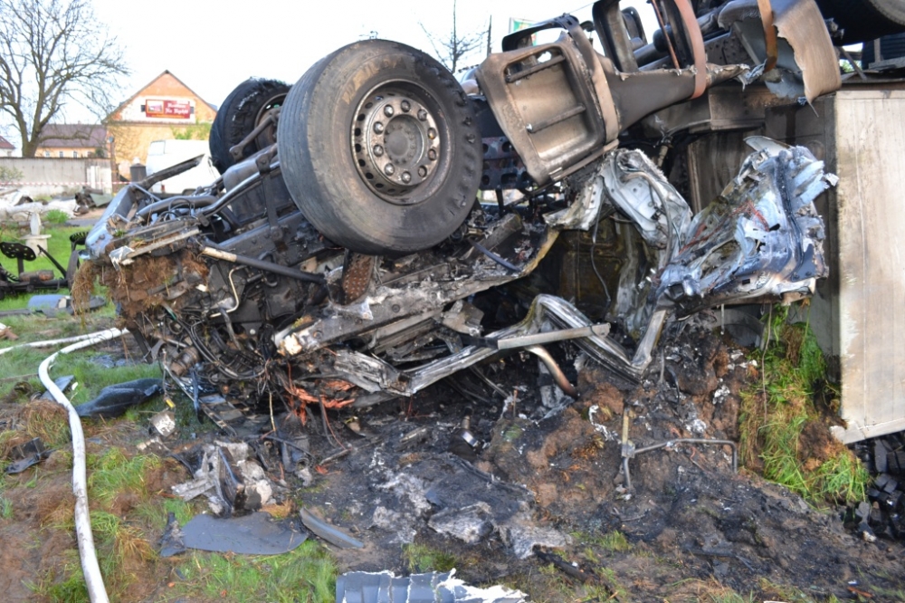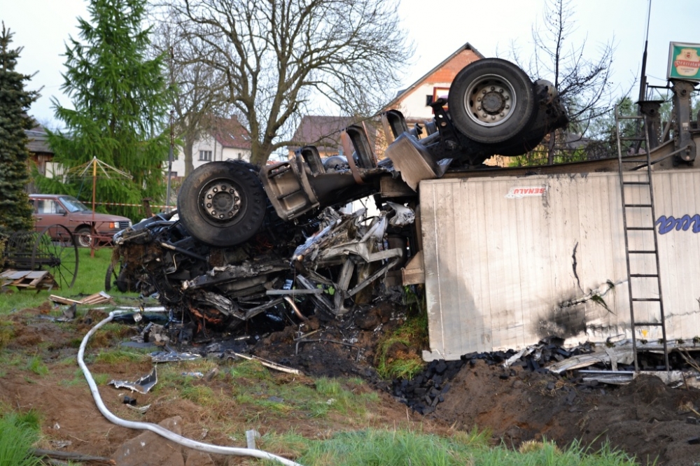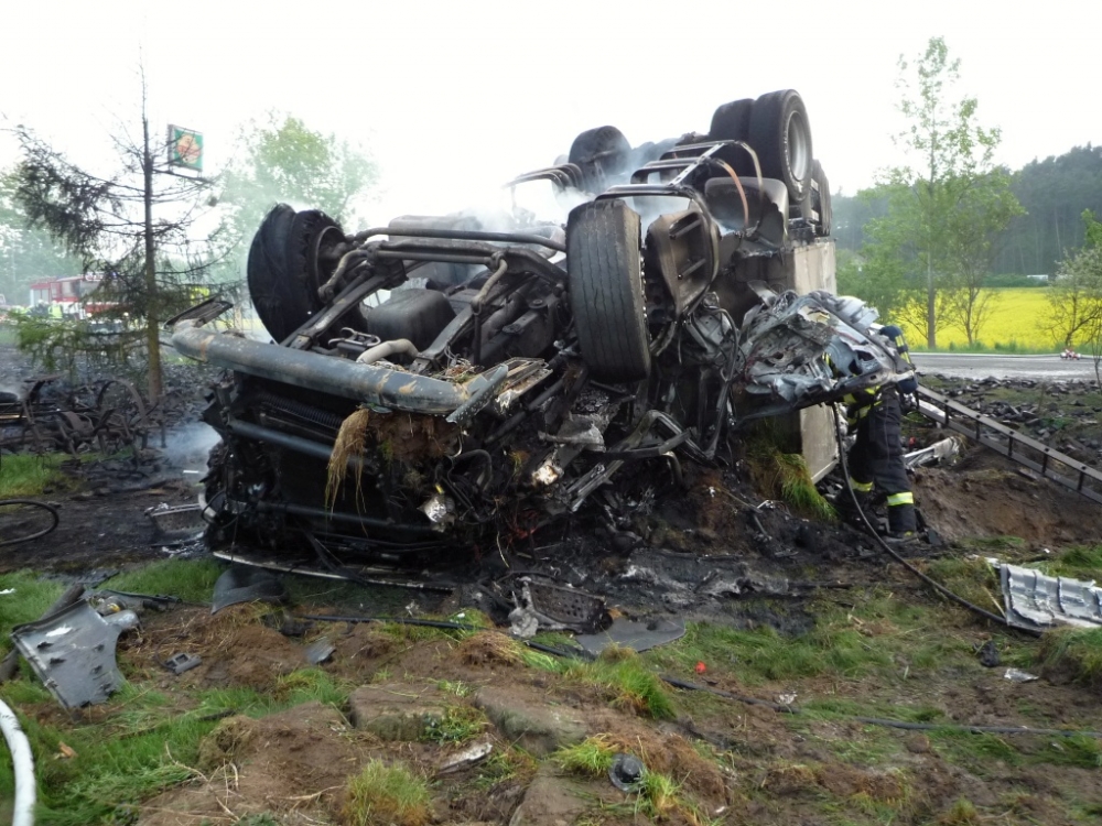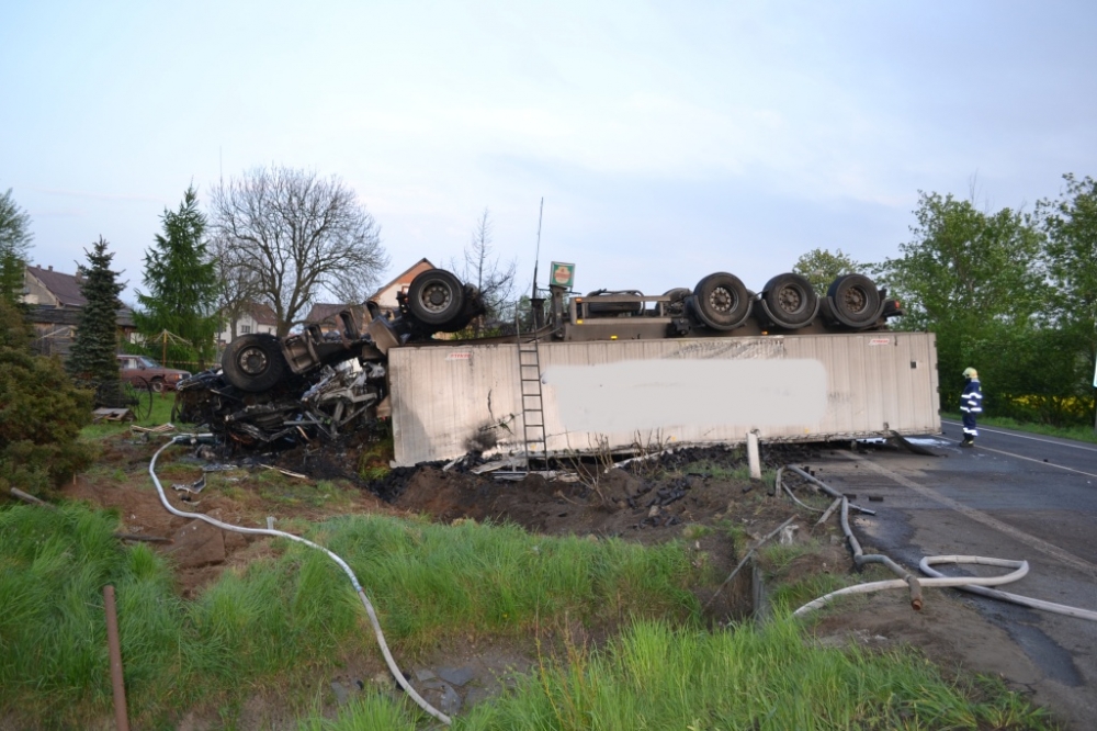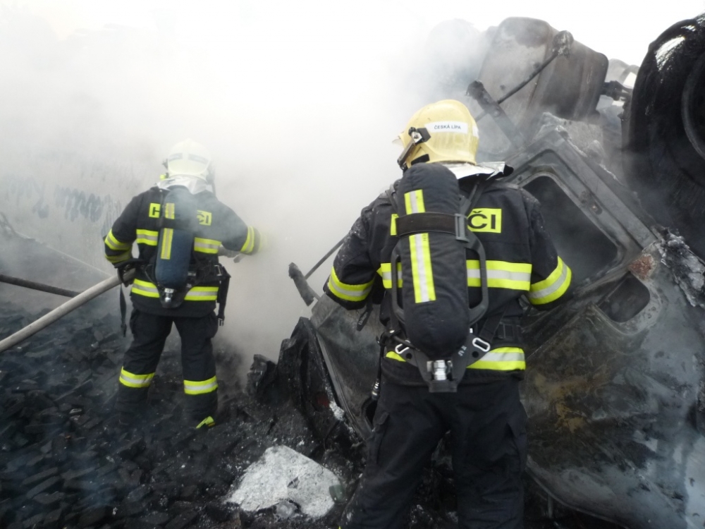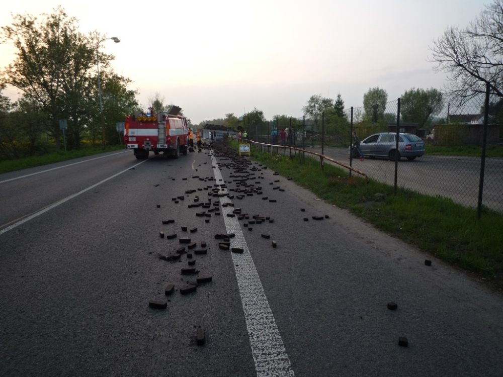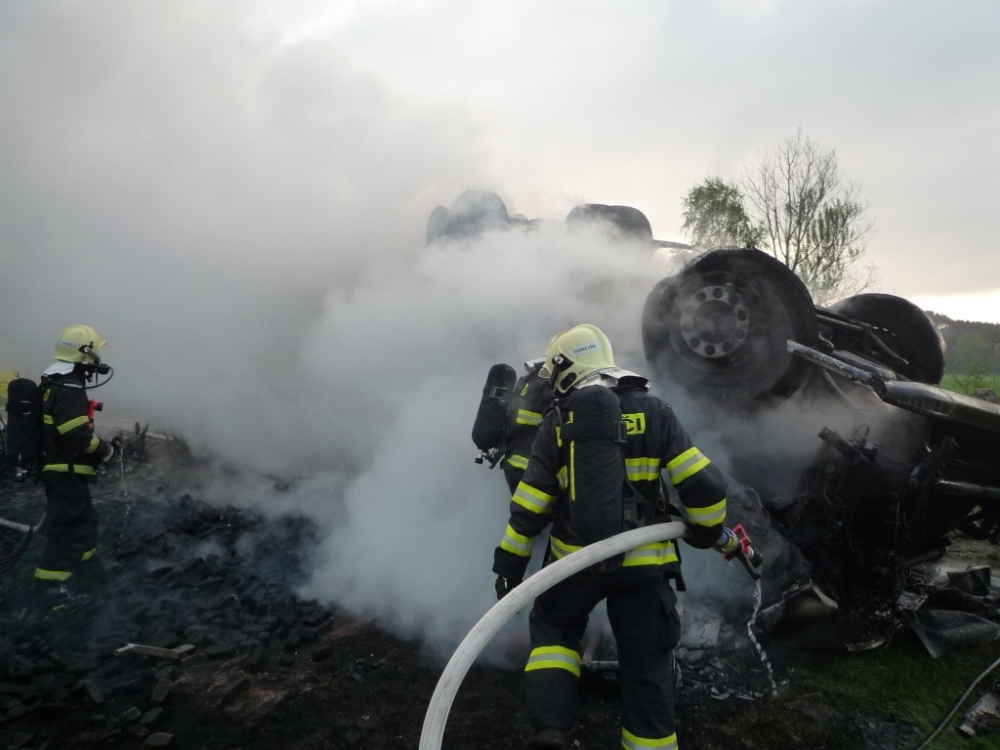 Kamion plně naložený briketami lehl popelem. Foto: HZSLK