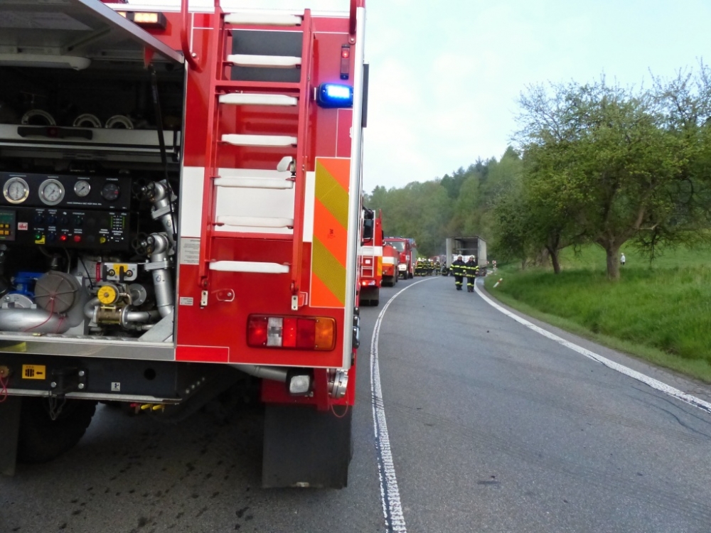 Požár kamionu komplikoval dopravu na Liberecku. Foto: HZSLK