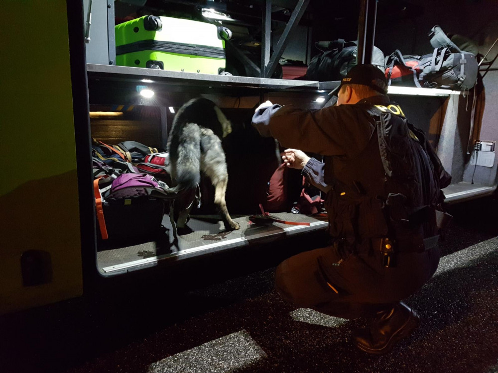 FOTO: Psovodi prohledávali autobusy na hranicích kvůli drogám. Objevili metamfetamin