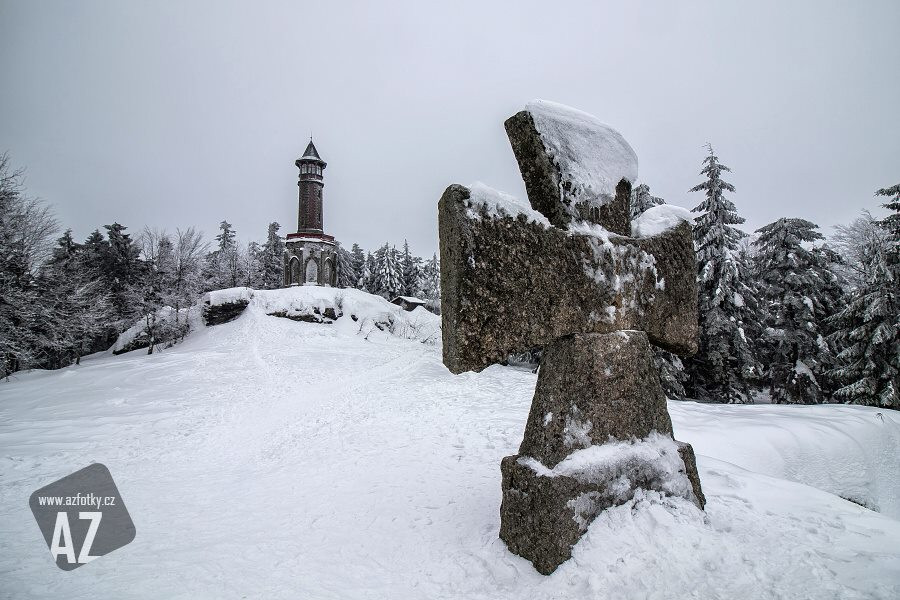 Na kamenný kříž pod rozhlednou Štěpánka někdo namaloval hákové kříže